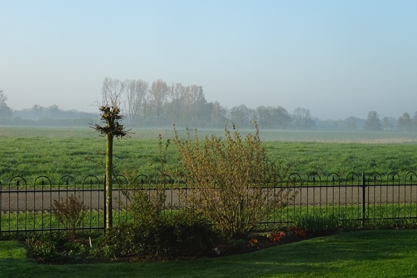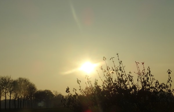 Vanmorgen foto's rondom het huis gemaakt. Mist en opkomende zon