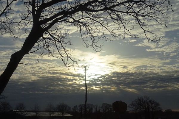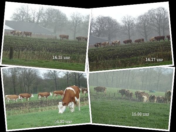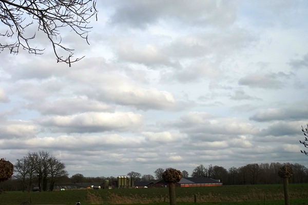 Al vroeg vanmorgen donkere wolken, vele opklaringen. Linksonder
