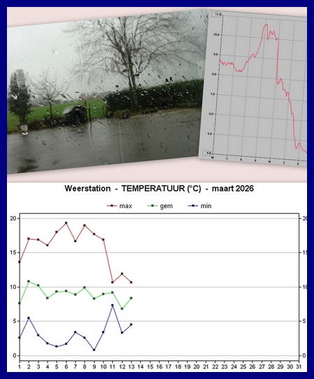 meest tussen de 10 en 11 gr. Er viel 0,4 mm regen.