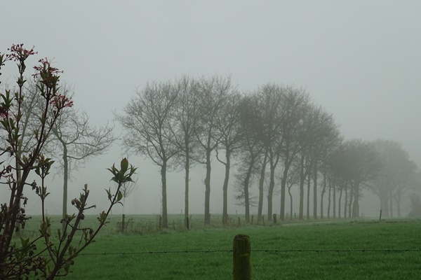 mistig. Wij verlieten het hotel en gingen richting Afferden.