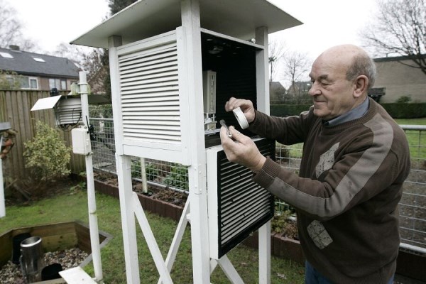 Een foto uit de Stentor van oud weerman Evert Jan Stegeman bij